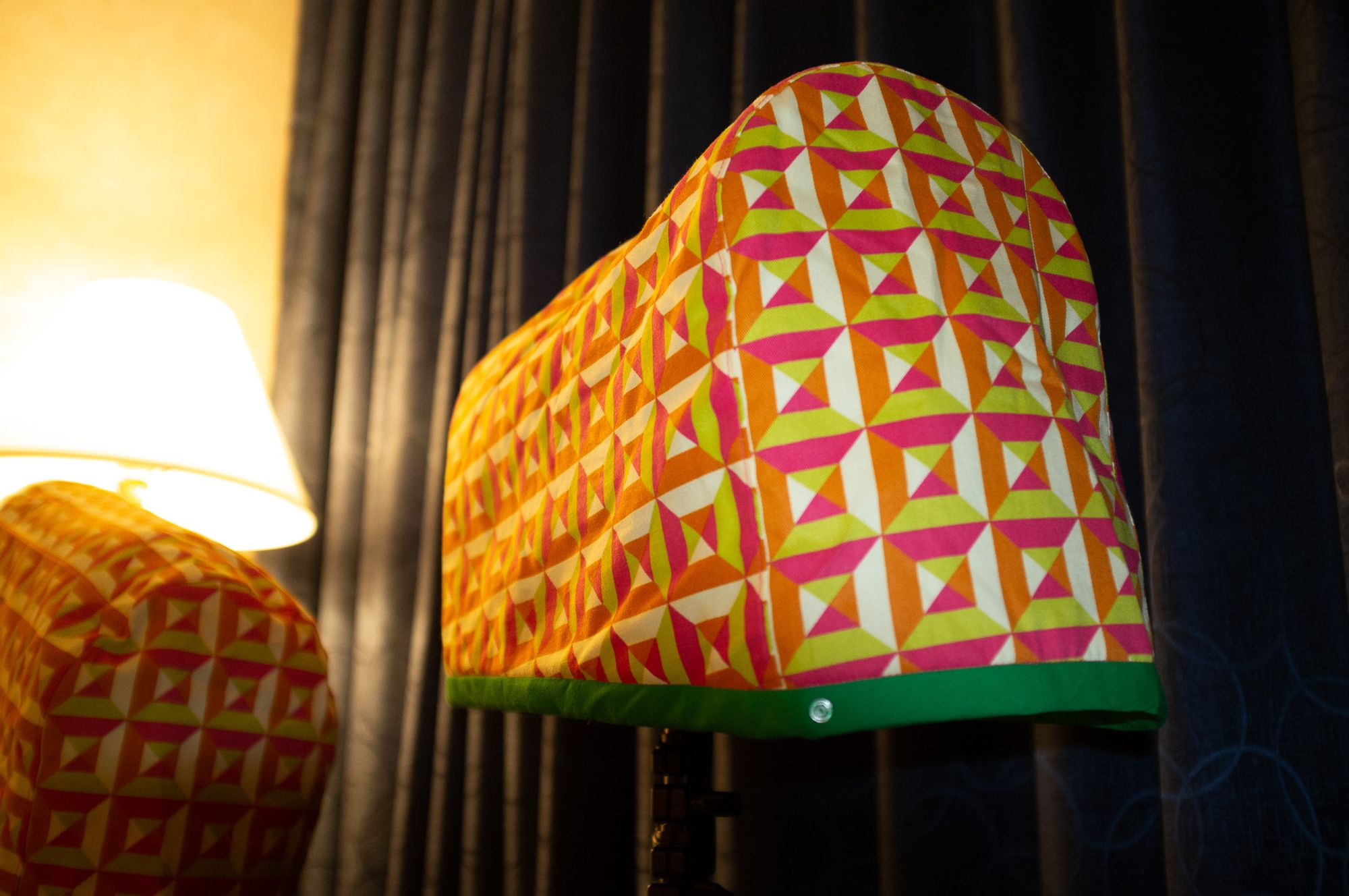 照明器具用の布カバーです。私が制作しましたオリジナルのカバーですが、スナップ付きで照明を完全にプロテクトします。市販のどのカバーよりも、案外一番優れています。